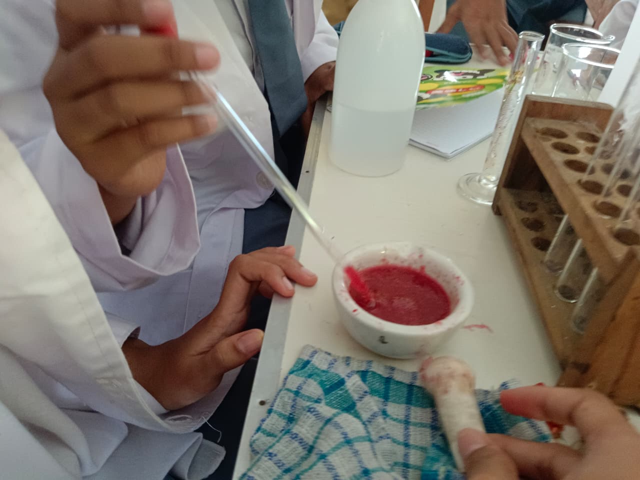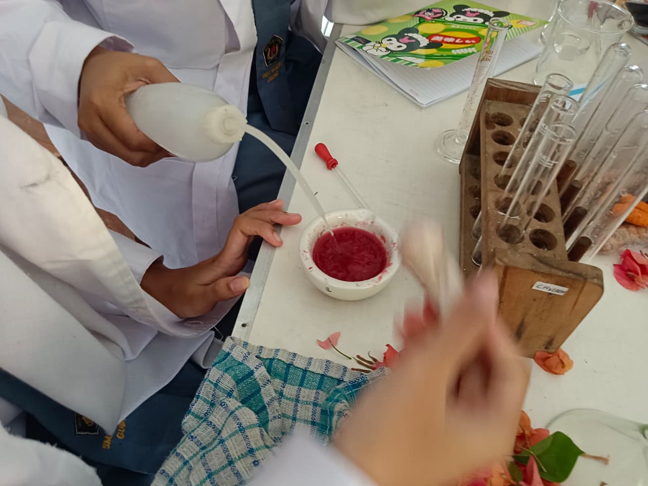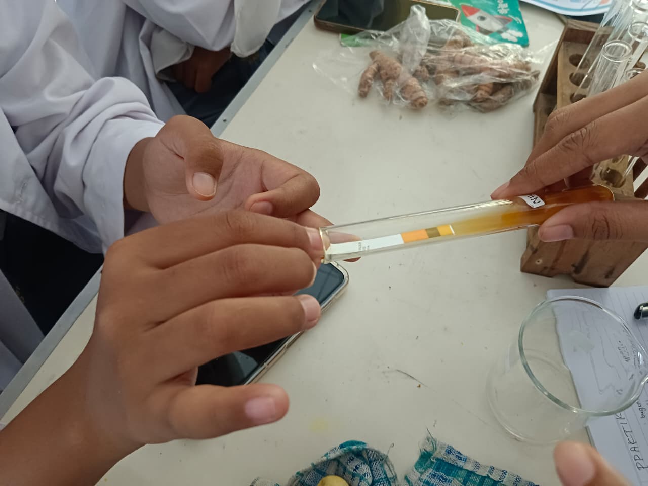 Setiap 2 tabung ekstrak diberi larutan HCl, tanpa larutan dan